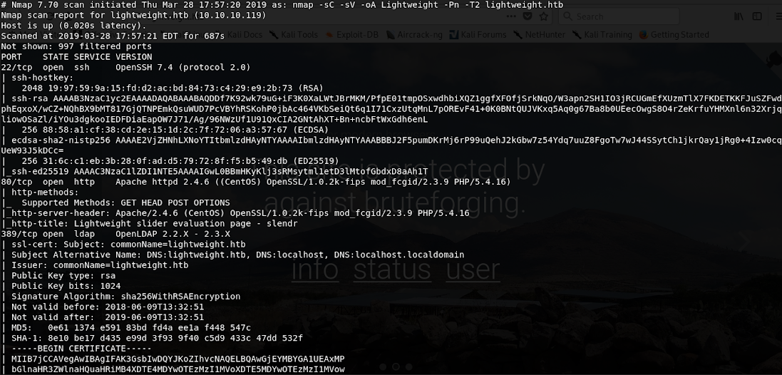 nmap -sC -sV -oA Lightweight 10.10.10.119