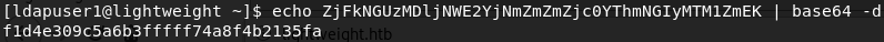 ...And that looks successful. Let's decode it now by echoing the base64 output to base64 -d:
