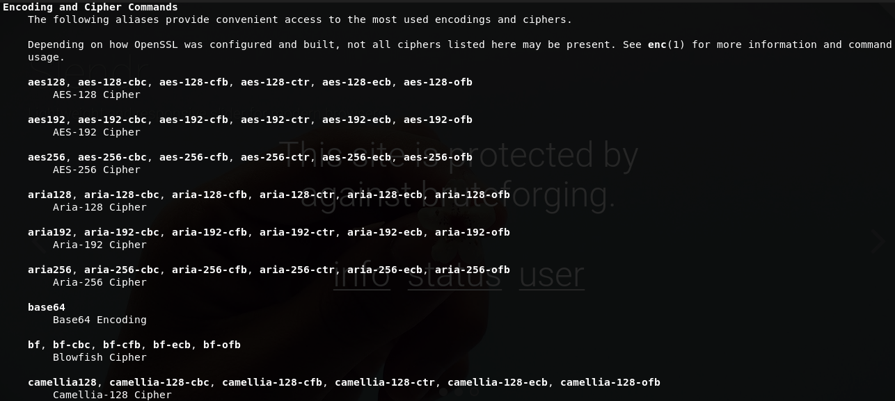 Okay, but what can we do with it? That all depends on the binary. In this case, we can read the man page for openssl to look for something useful: