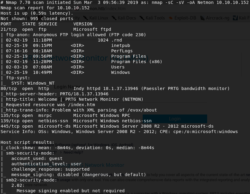 nmap -sC -sV -oA Netmon 10.10.10.152