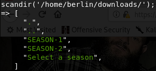 I had used the scandir PHP function to explore the file structure, and I knew this seemed familiar! Between this knowledge and the base64 trick we learned, it's safe to say that hxxps://lacasadepapel.htb/file/ actually represents /home/berlin/downloads/. Knowing this, we can start trying some directory traversal attacks.