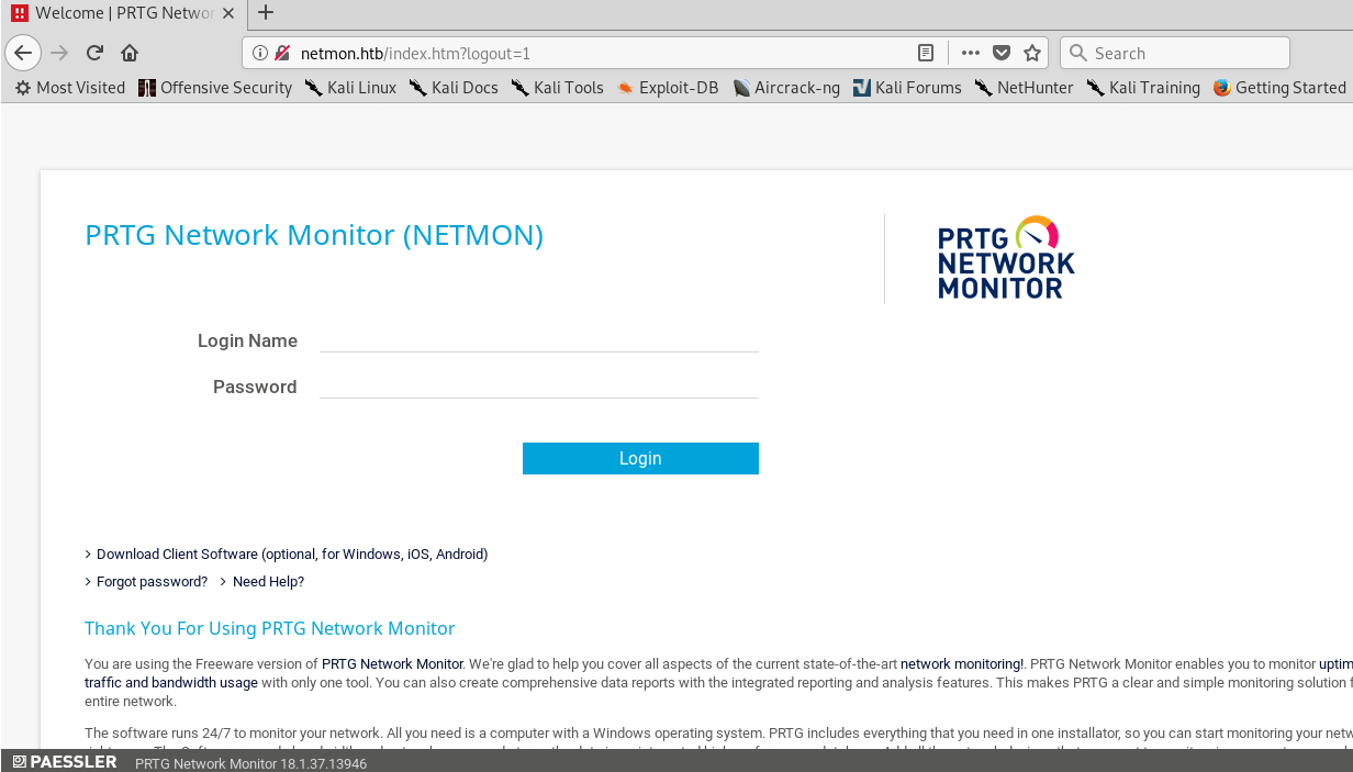 Netmon is our target for this week's HackTheBox report. This was one of the easier times I've had with HackTheBox, so hopefully the write-up won't be too painful.