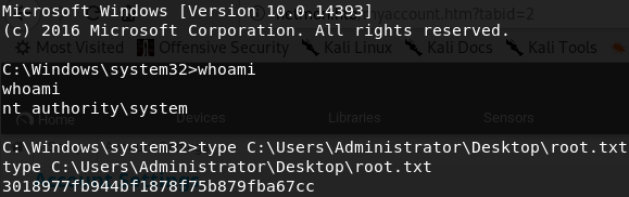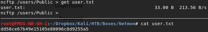 Once we've connected, it doesn't take long to locate the user flag in \users\public. We can get it to our machine with FTP and read it. Now we're ready to start escalating our way towards root.
