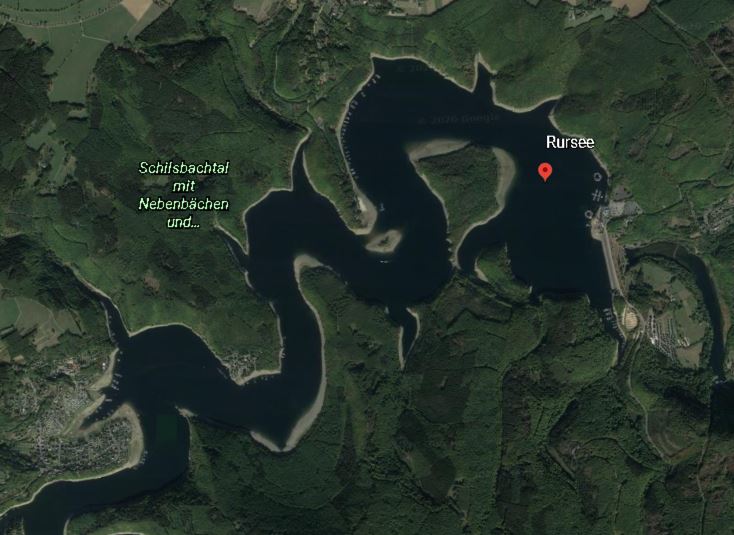 The location that is tagged is Rursee, which is right next to the dam (Rurtalsperre Schwammenauel):
